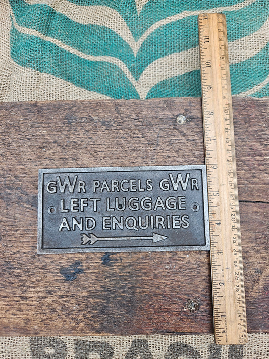 "PARCELS LEFT LUGGAGE" Cast Antique Iron 150mm X 75mm