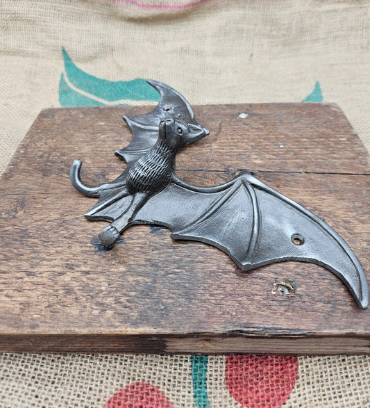 Antique Iron Flying Bat Wall Art – 270mm Wide – Gothic Claw Hook Décor – Halloween & Witchy Home Accent