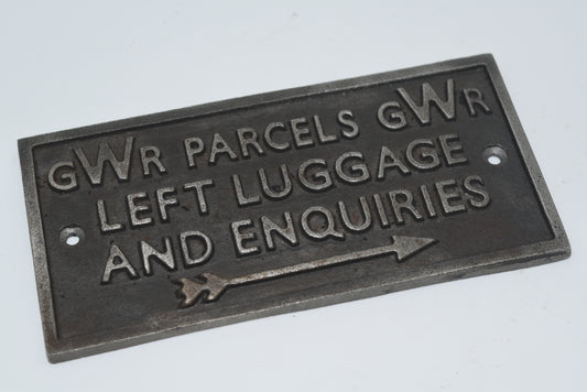 Plaque "PARCELS LEFT LUGGAGE" Cast Antique Iron 150mm X 75mm