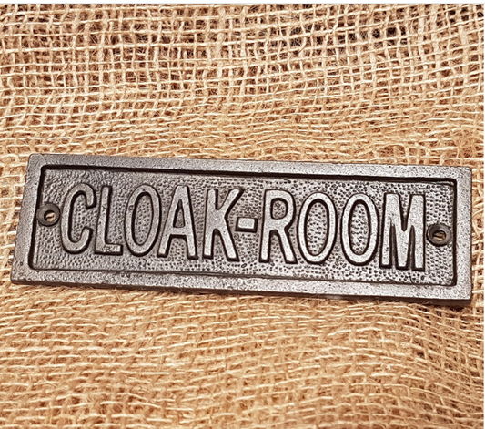 Plaque CLOAKROOM Cast Antique Iron 35mm x 152mm