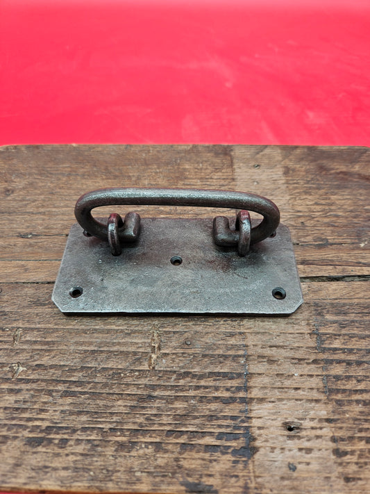 Heavy Duty Pull Handle on Back Plate with offset - Antique Iron