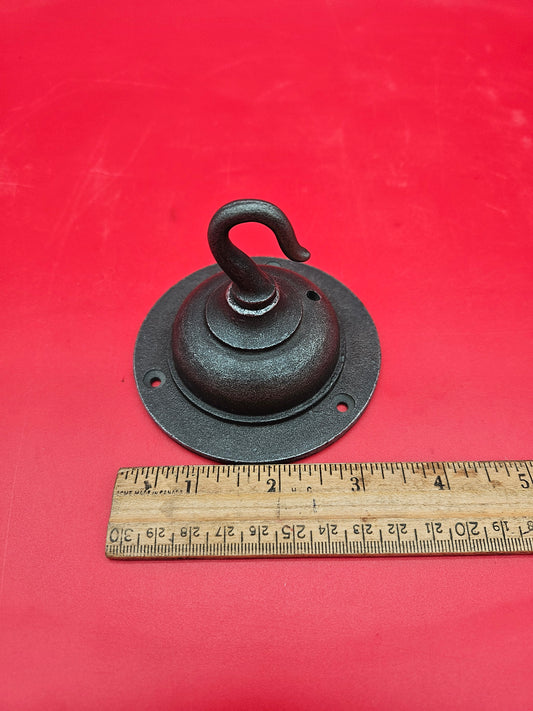 Ceiling Hook Cleat Loop Eye Cast Square Plate Antique Iron 77mm