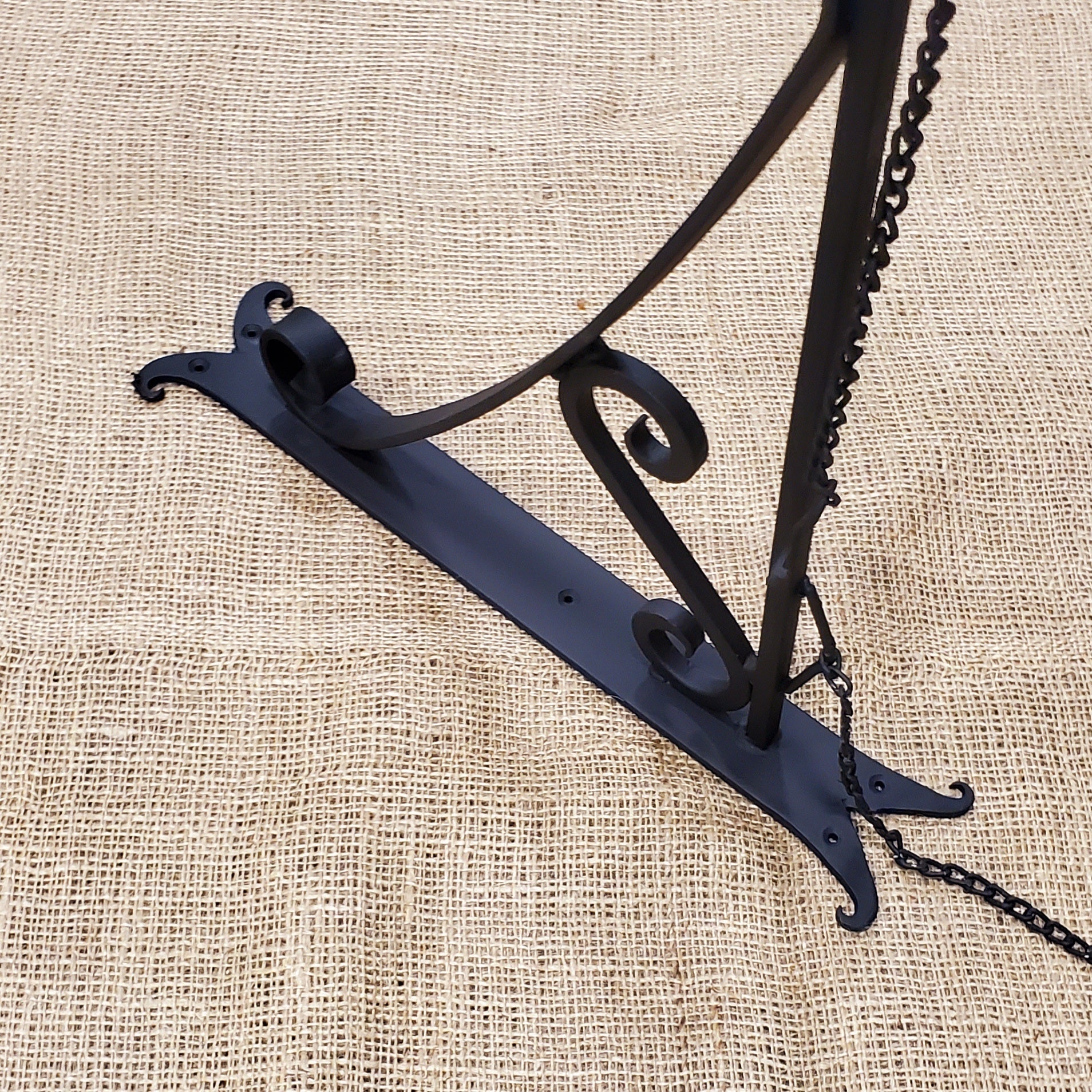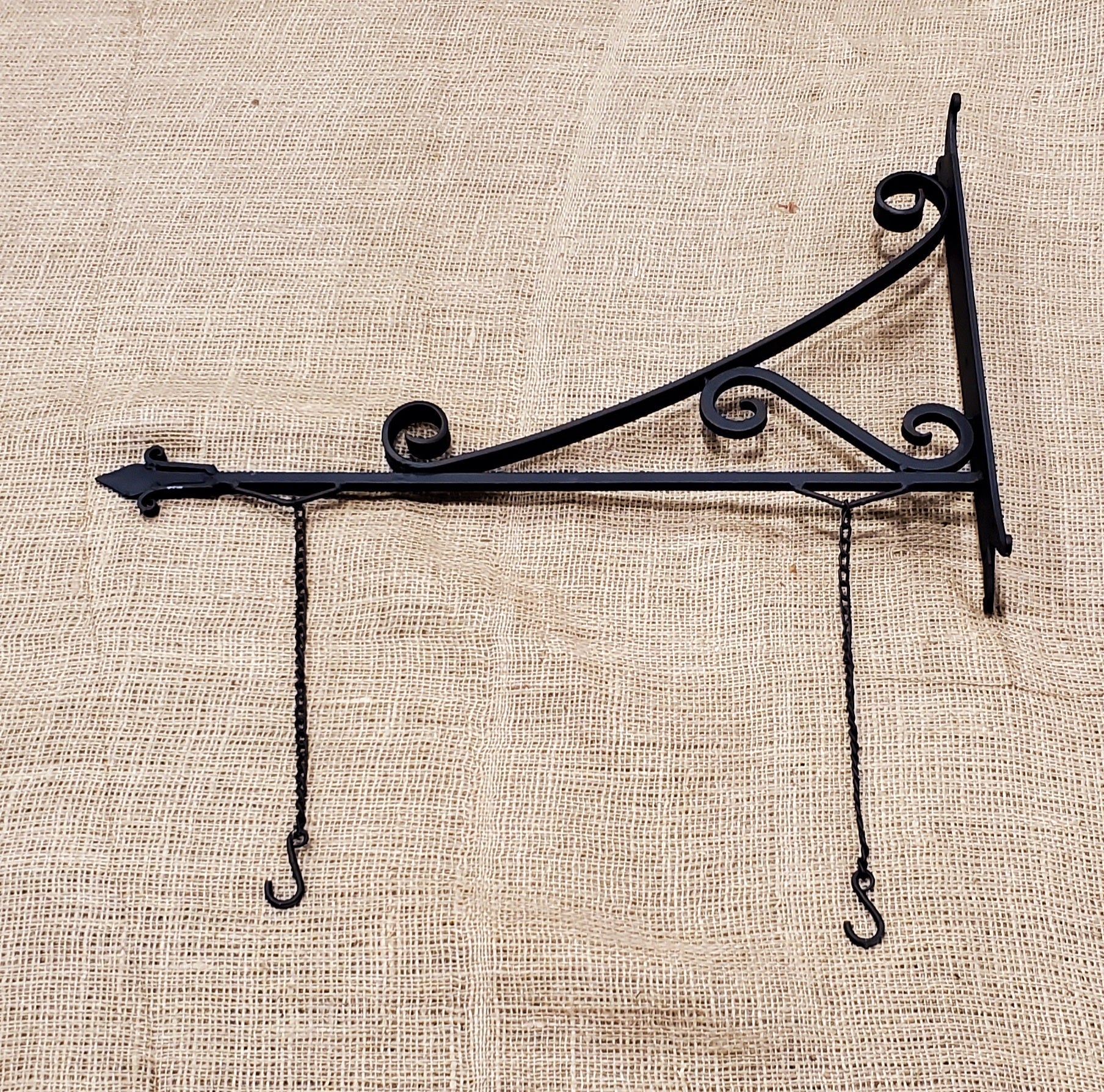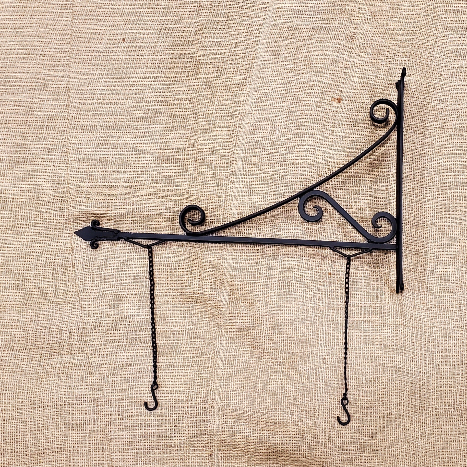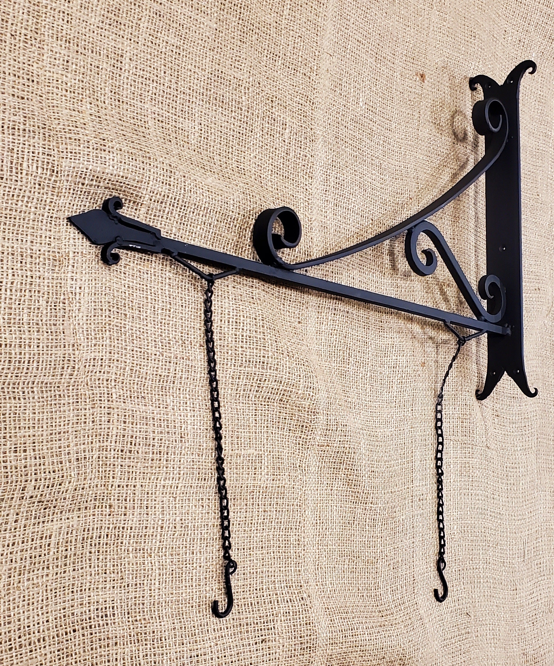 This Vintage Style Hand Forge Pub style hanging bracket with 2 chains for hanging signs or plants etc. Antique Iron.