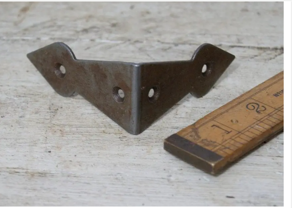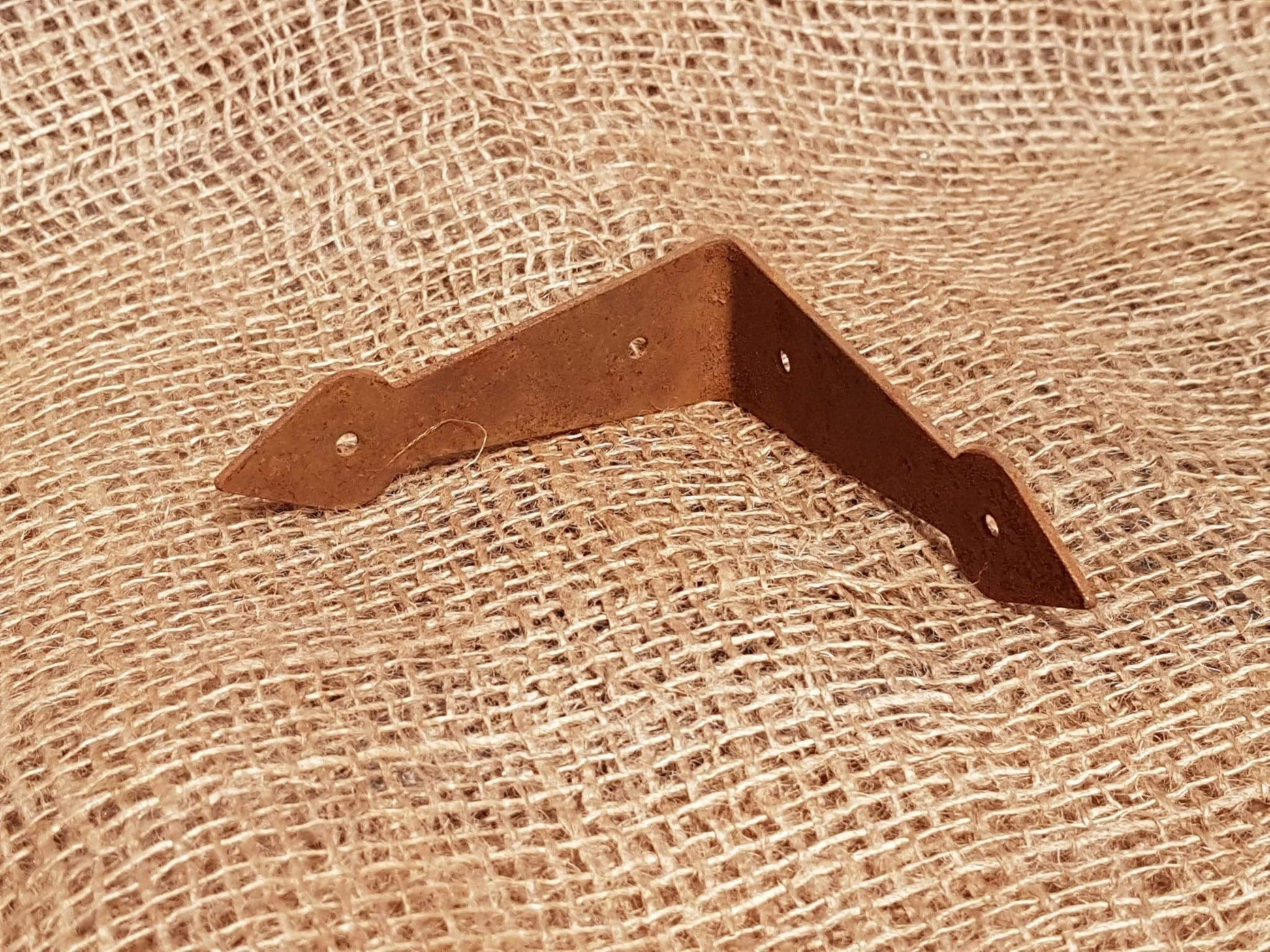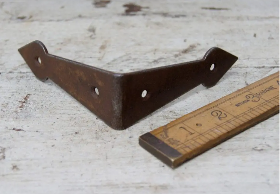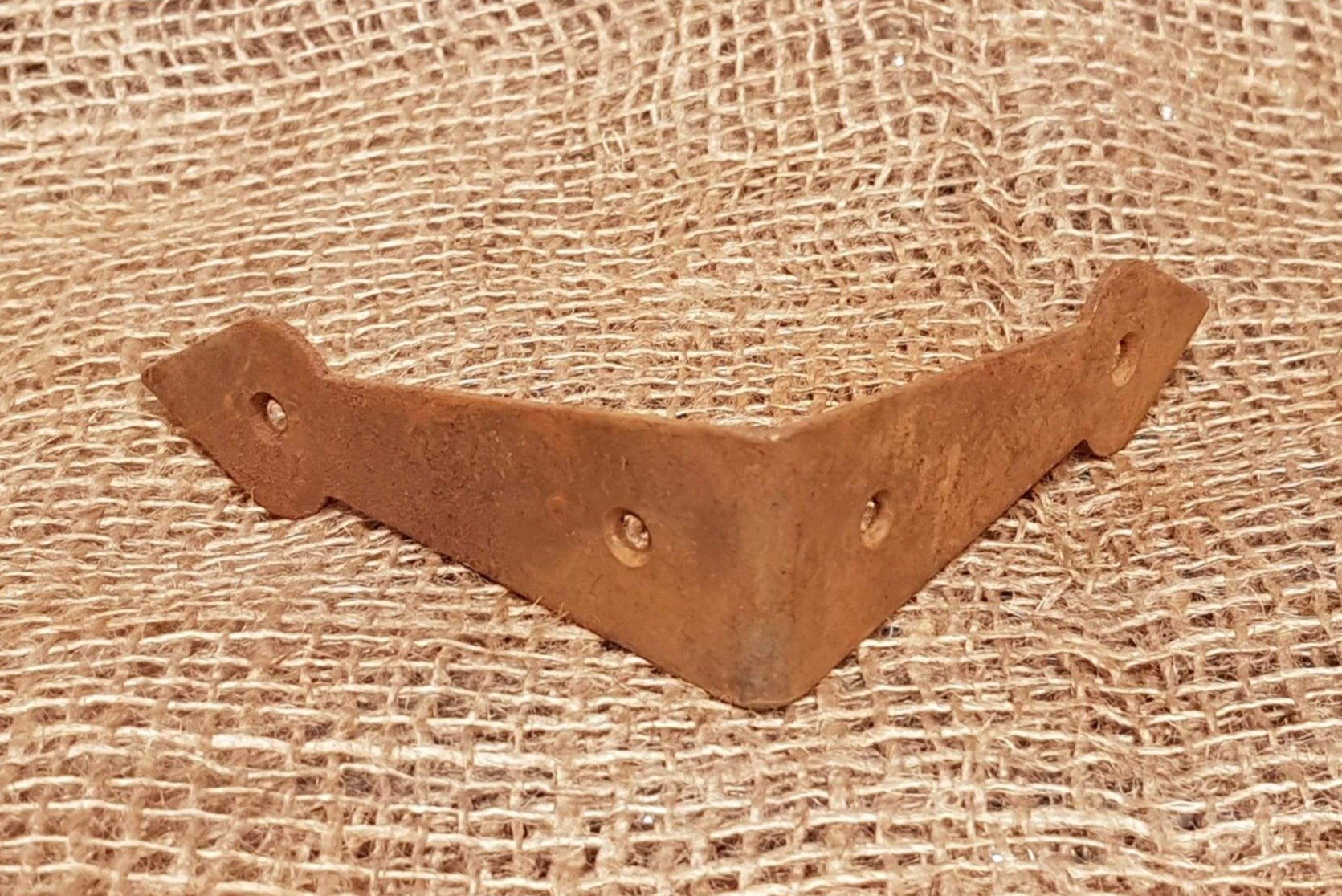 Rusted metal corner straps for a rustic look or antique iron. Boxes, crates, bins, cabinets, chests, stage backdrop material to complement a range of items.