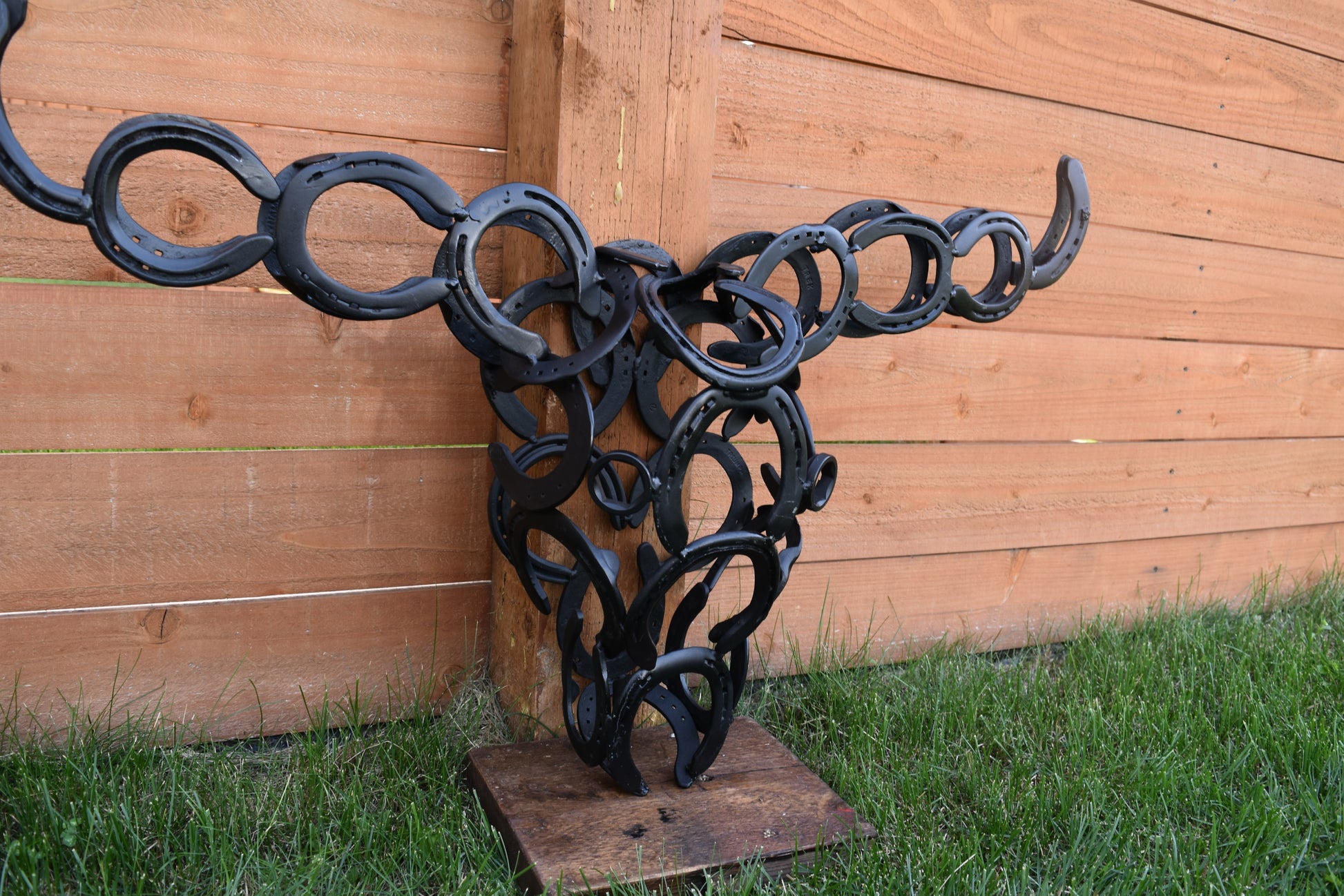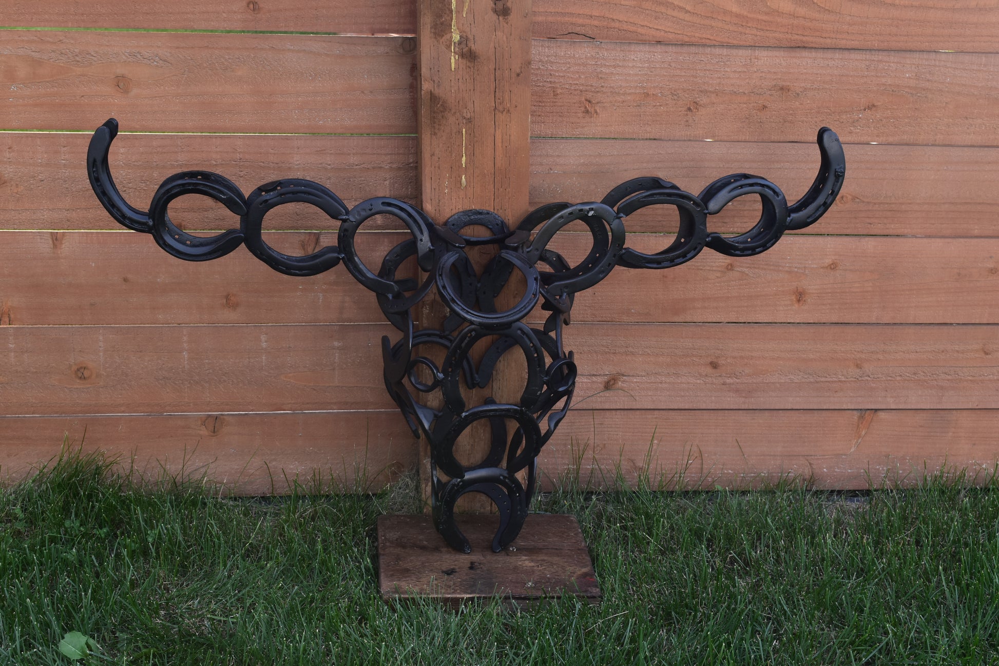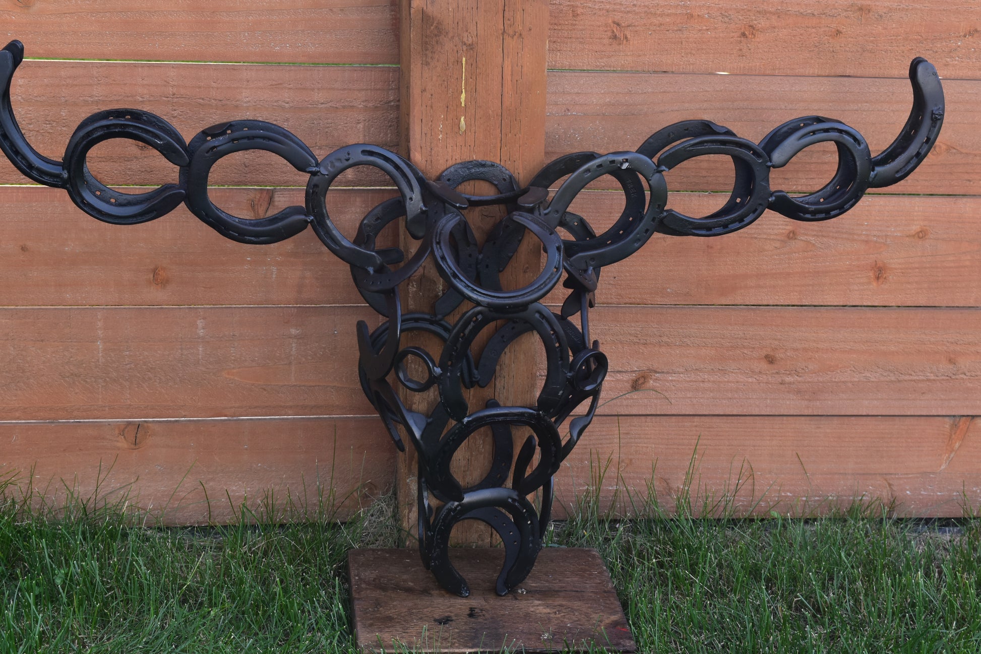 Authentic horseshoes repurposed into a 3D Longhorn Silhouette - Mat Black