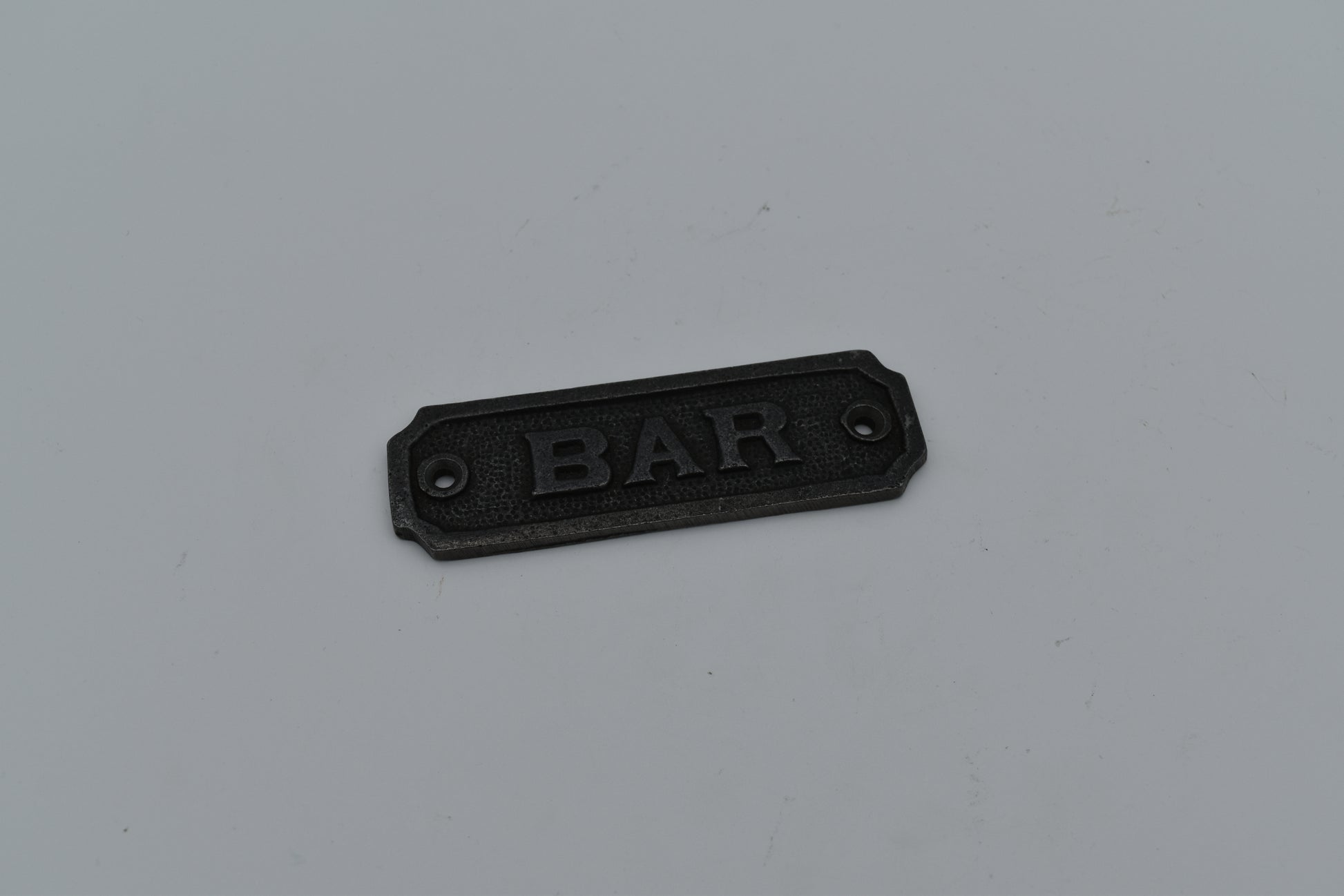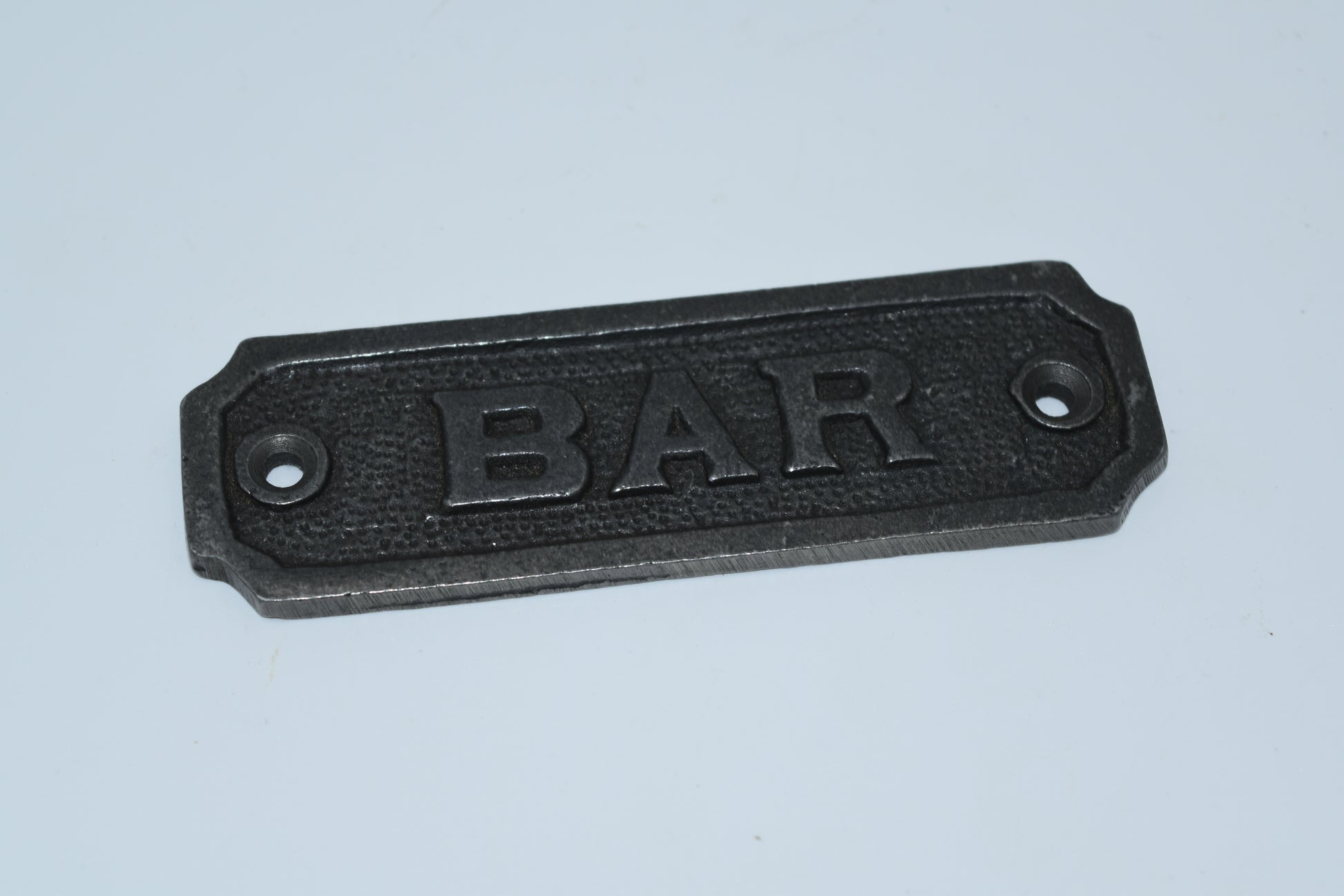 Adds character and classic styling to any space to your home, office, or place of business. Influenced by traditional vintage designs, The "Bar" Plaque combines functionality, traditional looks, and durability.Cast Iron with a Natural Antique Iron Finish