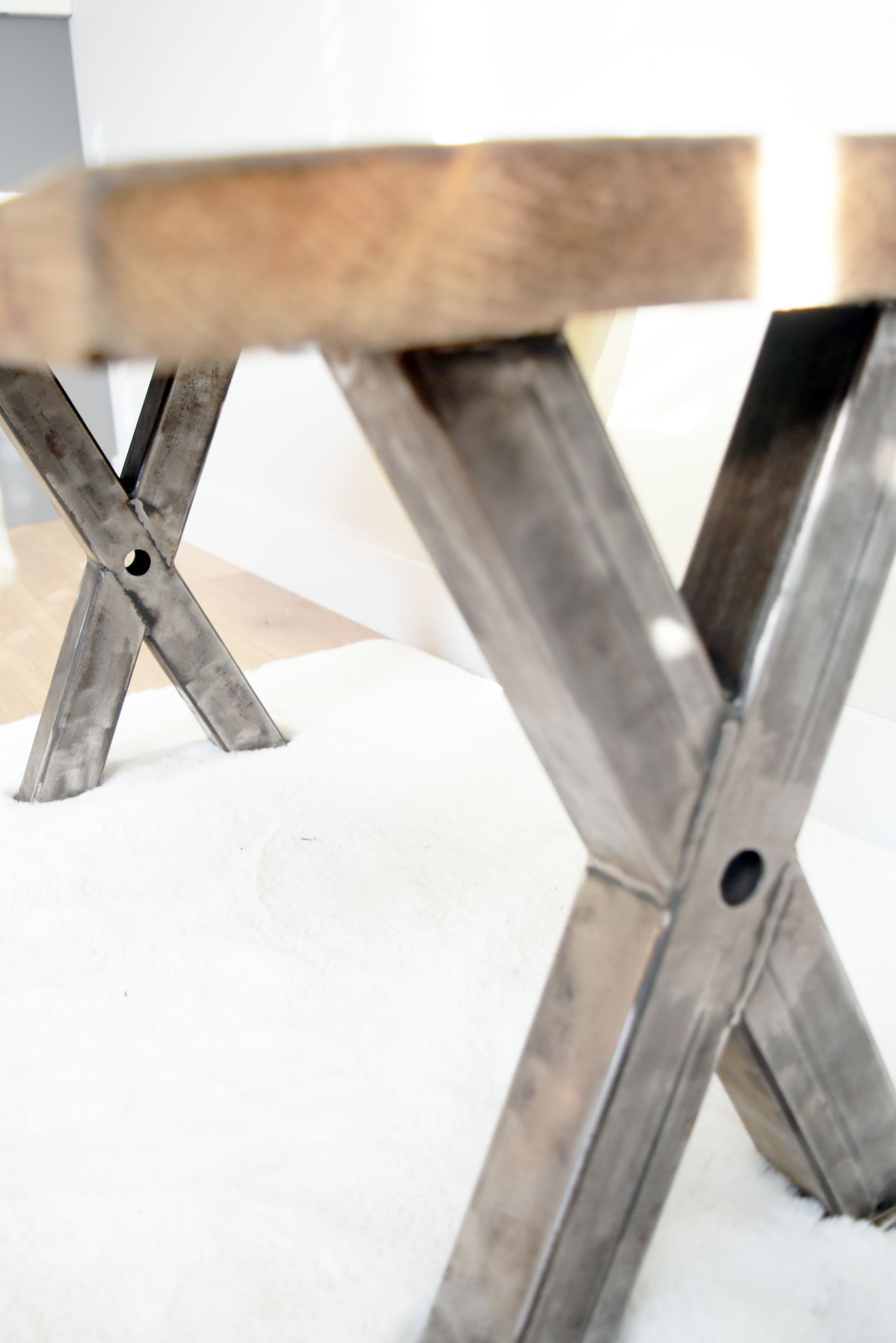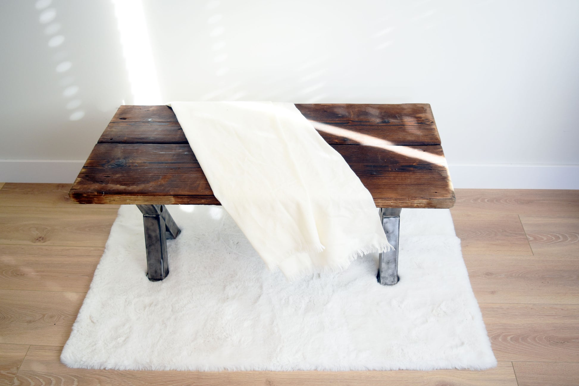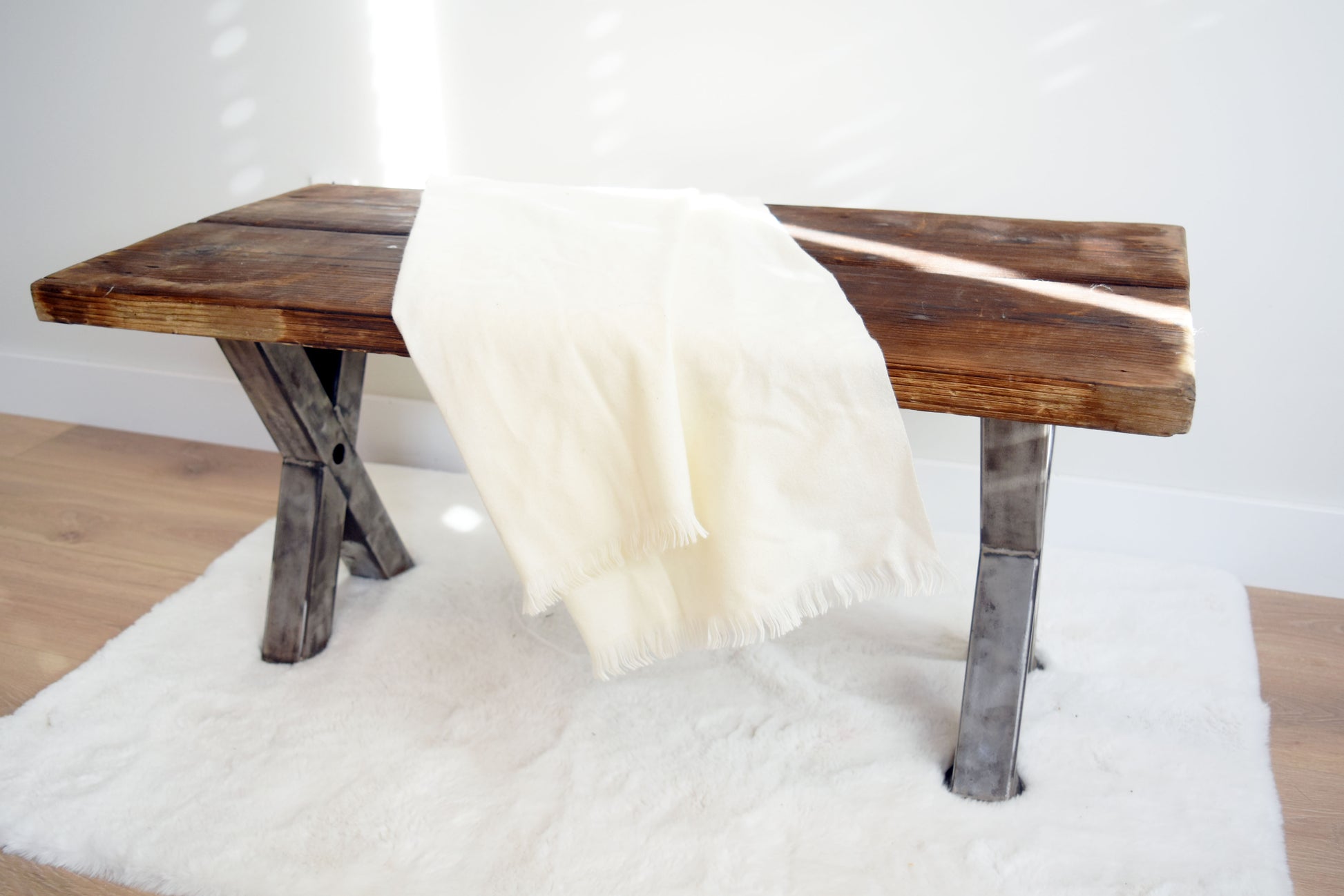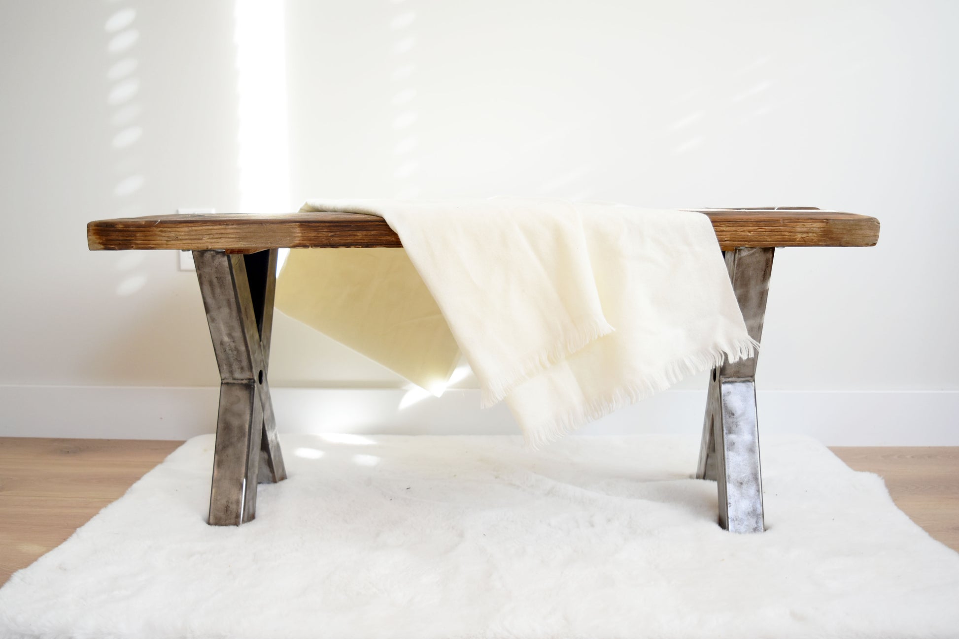 This is another take on the industrial base that we have used for other benches. This bench will frame the entrance of your home with a sense of warmth, that comes from combining wood with metal.
