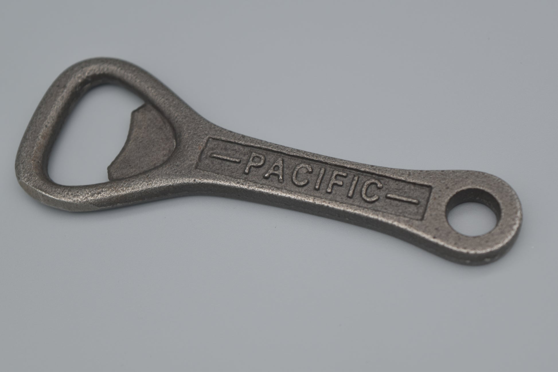 This is a classic antique-style bottle opener has the Canadian Pacific name stamped on it. This tough bottle opener will look great in a man cave or on a patio.