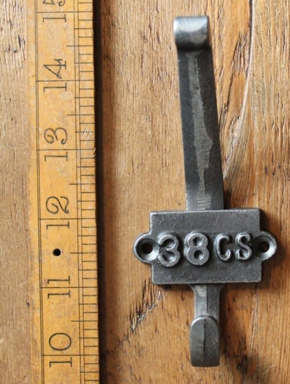 Coat Hook Double ’38CS’ Shallow Angle 2 Part Antique Iron 110mm