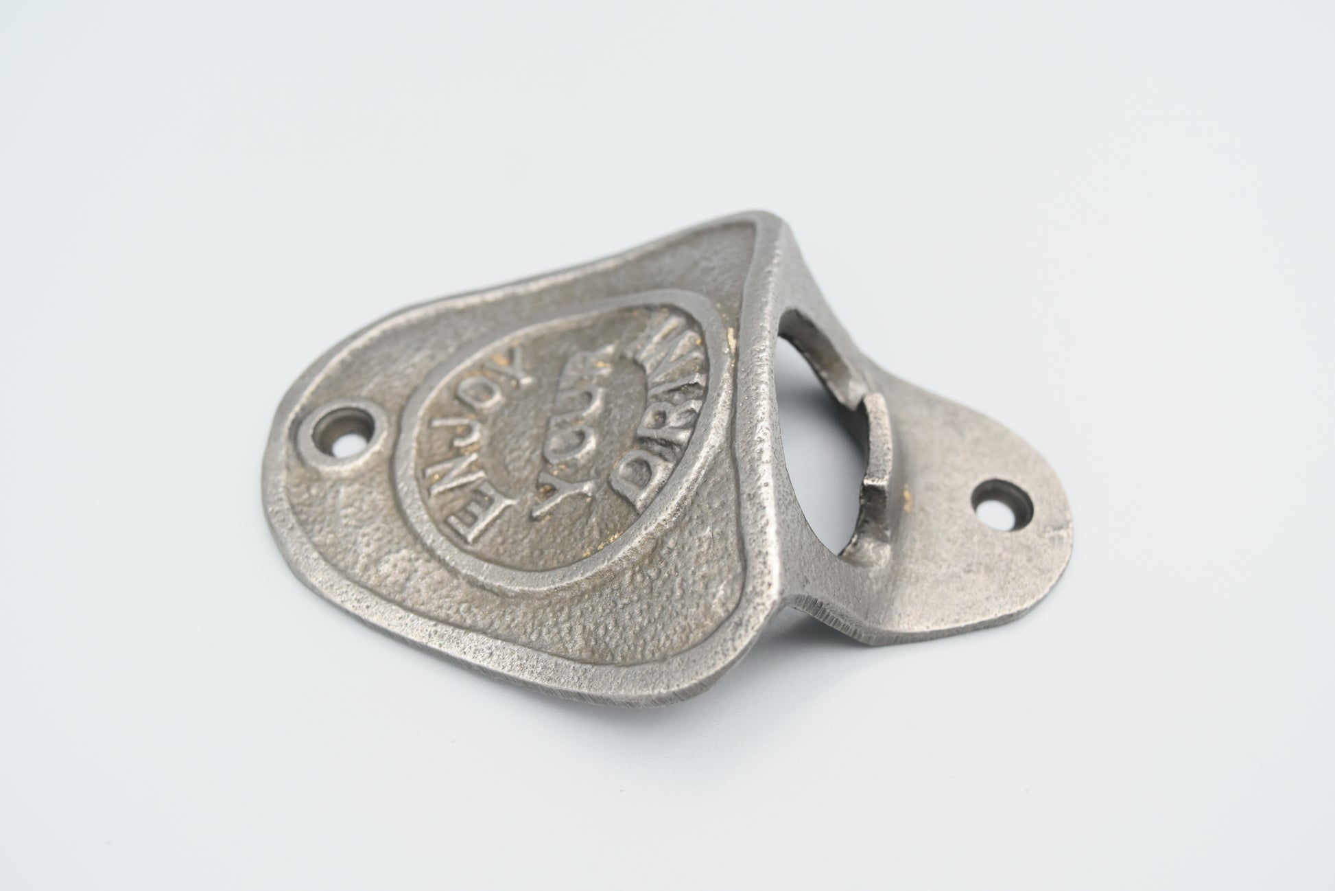 This wall-fixed cast iron bottle opener is a great addition to your bar, man cave, or deck.