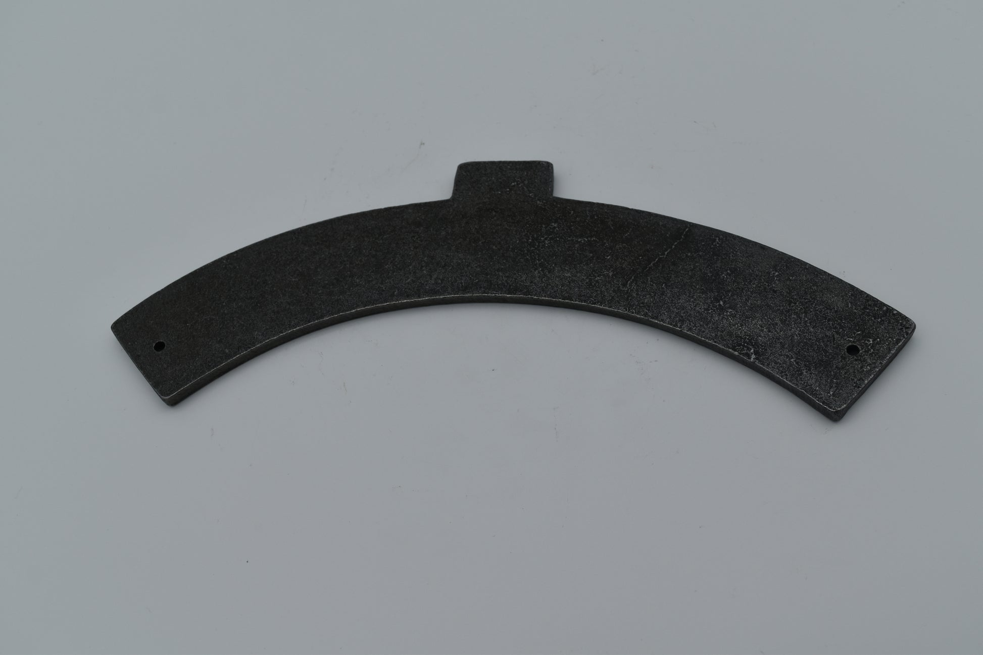 This curved plaque is approx 12" wide x 4" high and 1/4" thick in the antique iron finish