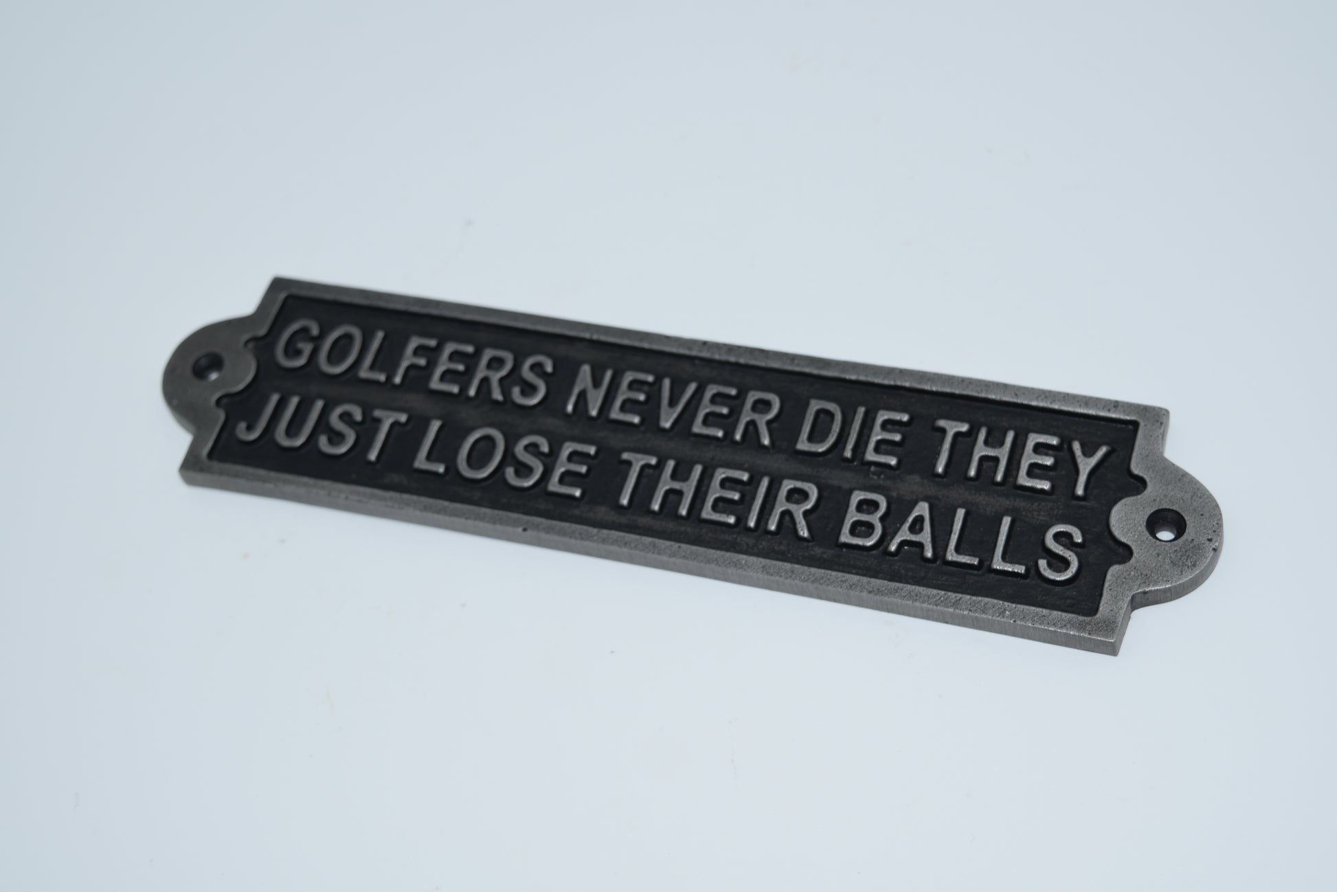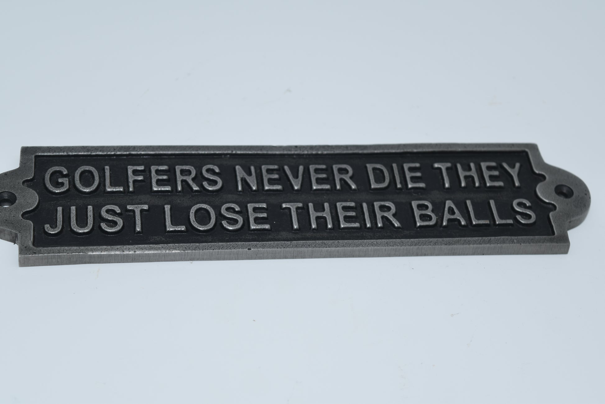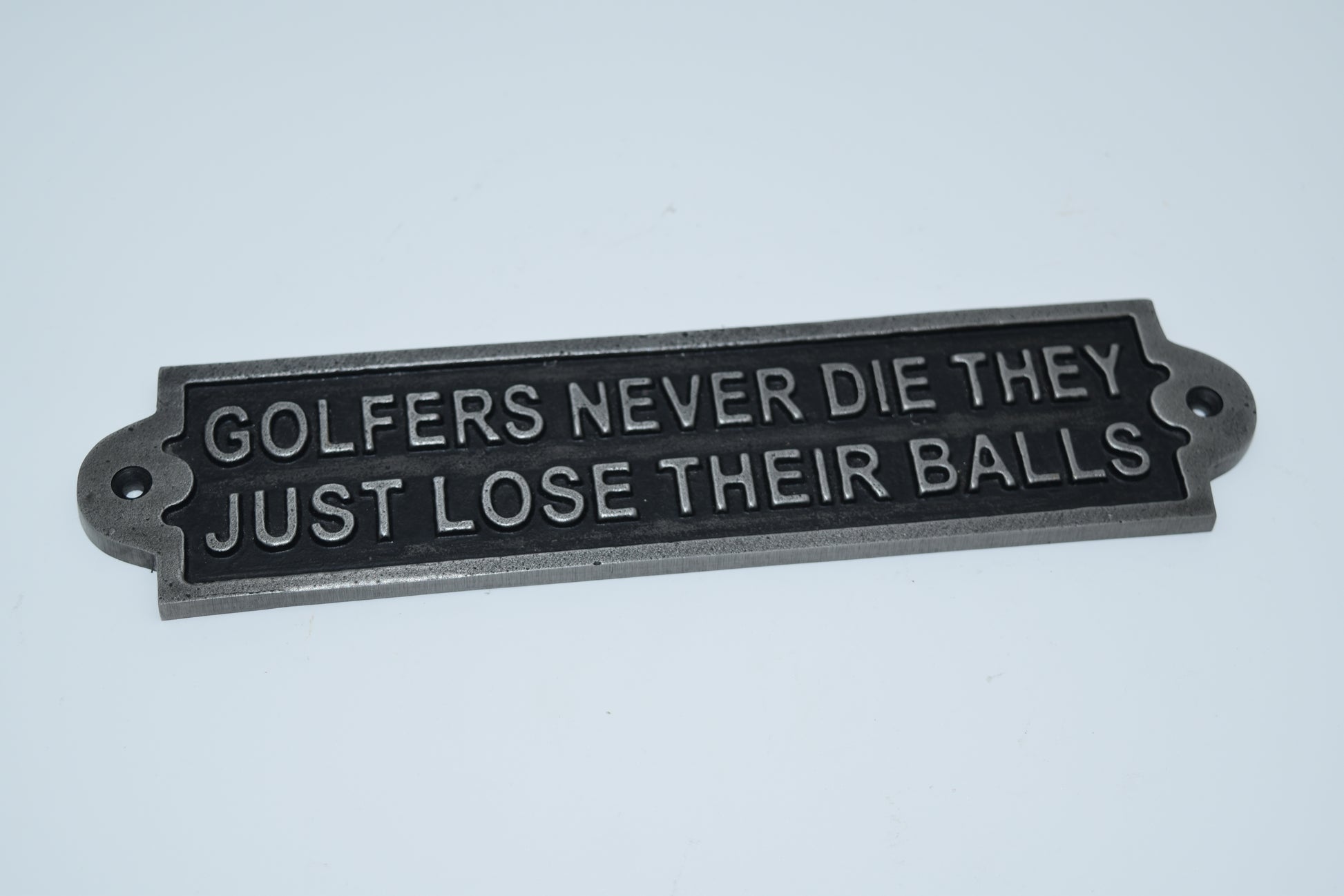 Golfers Never Die, They Just LoseTheir Balls-Cast Antique Iron 2 inches by 8 inches