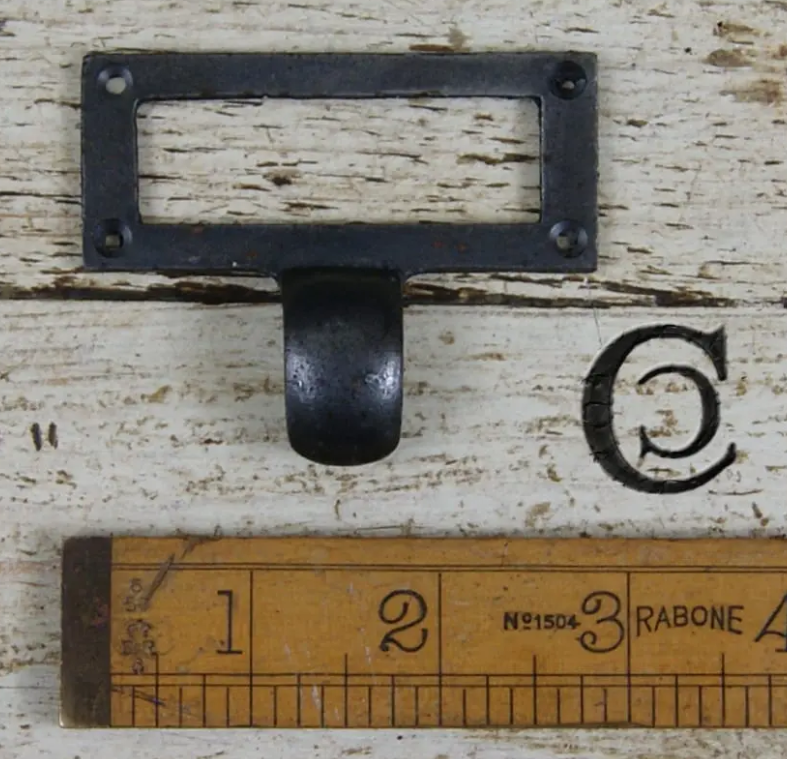 Library Label Frame Pull Square Cast Antique Iron 70mm x 30mm