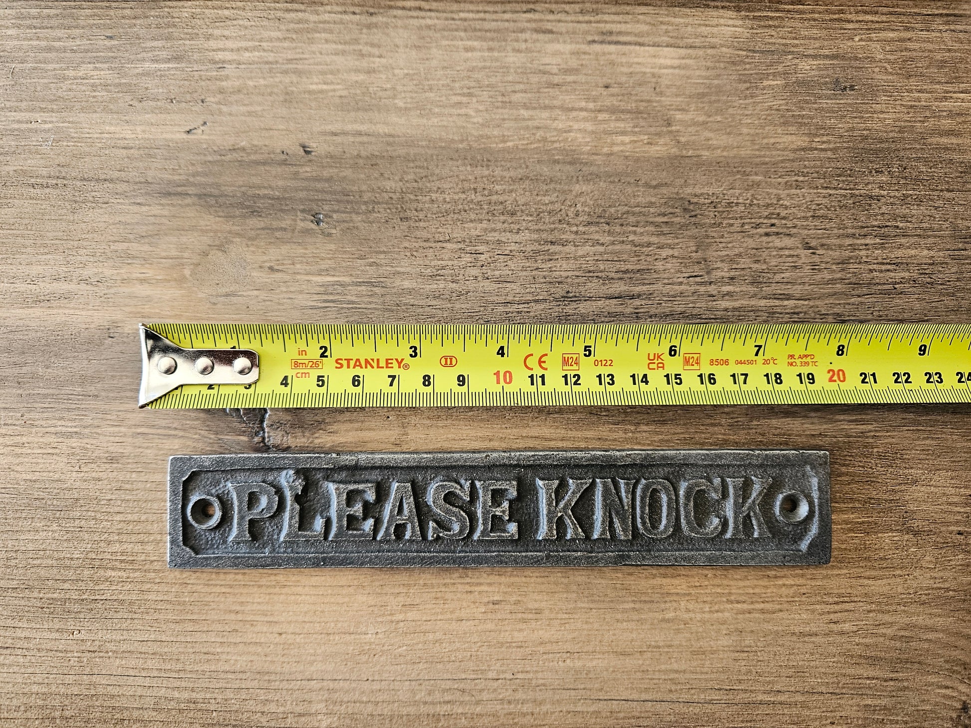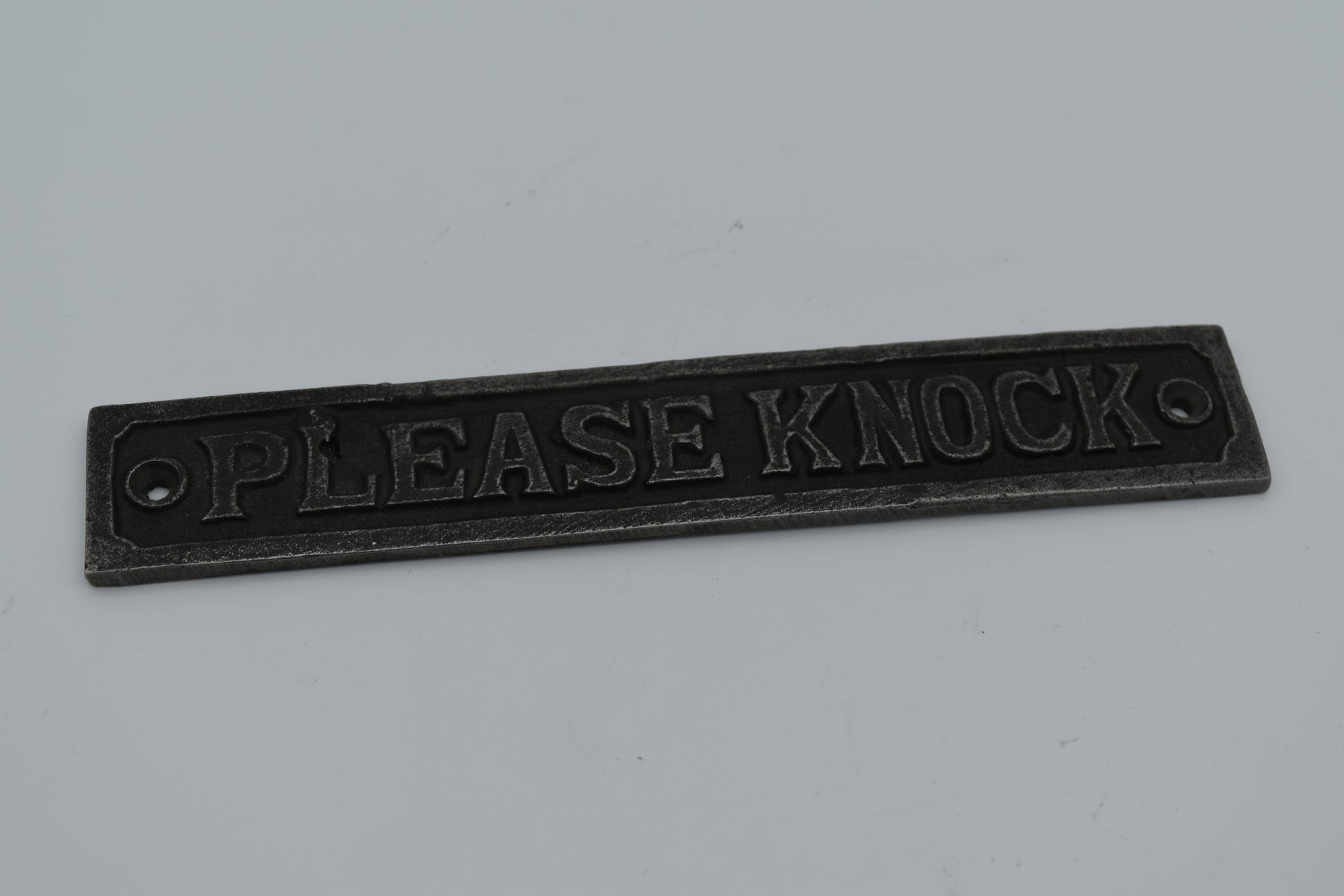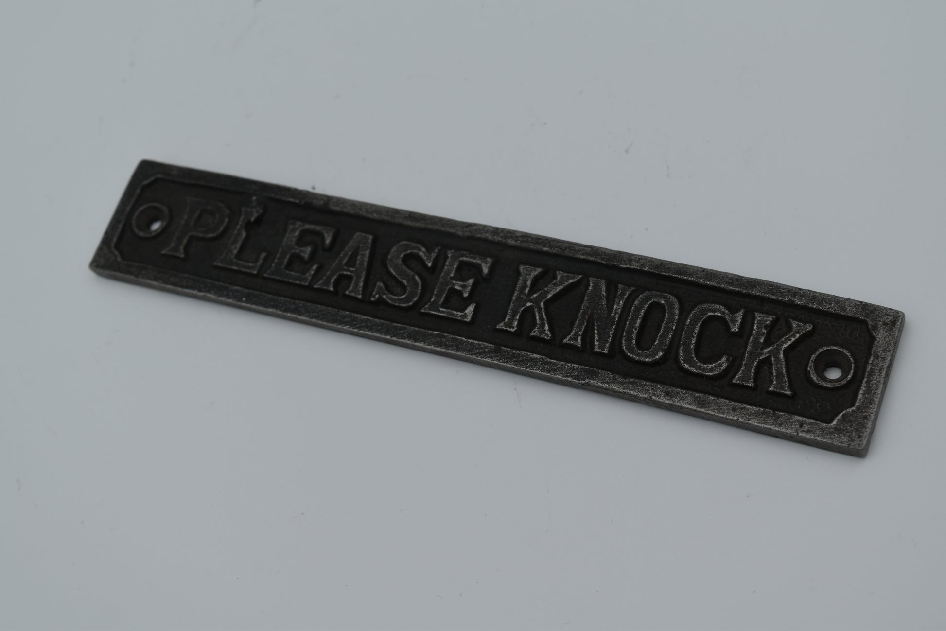 Plaque PLEASE KNOCK Cast Antique Iron – 2 Sizes Available