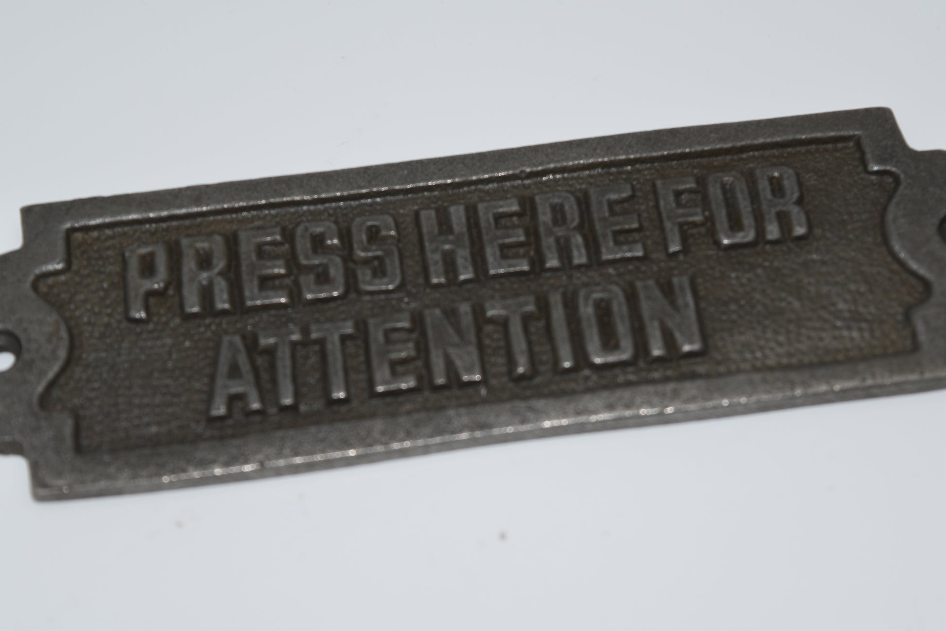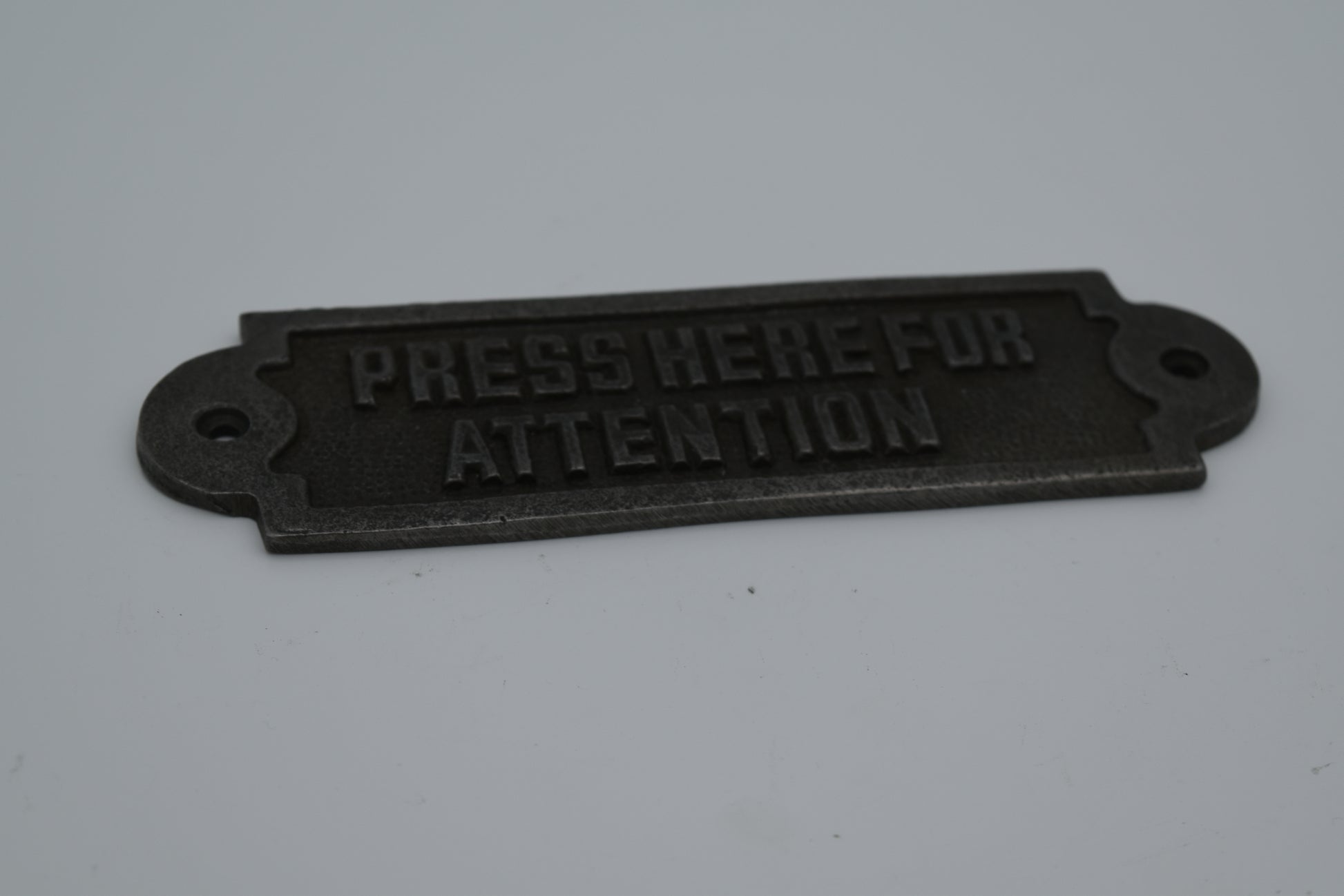 Press Here for Attention Cast iron plaque
