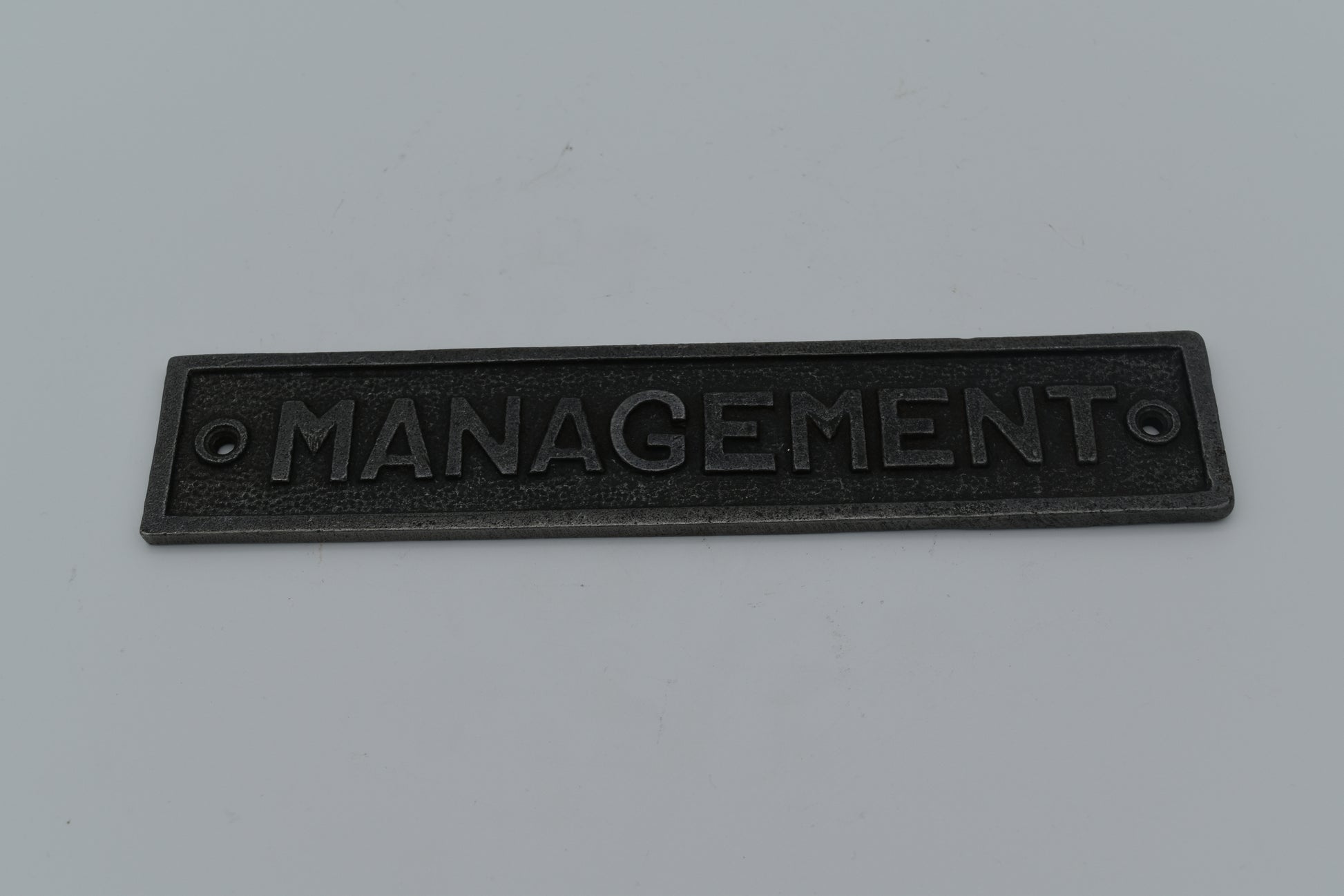 Adds character and classic styling to any space to your home, office or place of business. Influenced by traditional vintage designs, The "Management" Plaque combines functionality, traditional looks and durability.