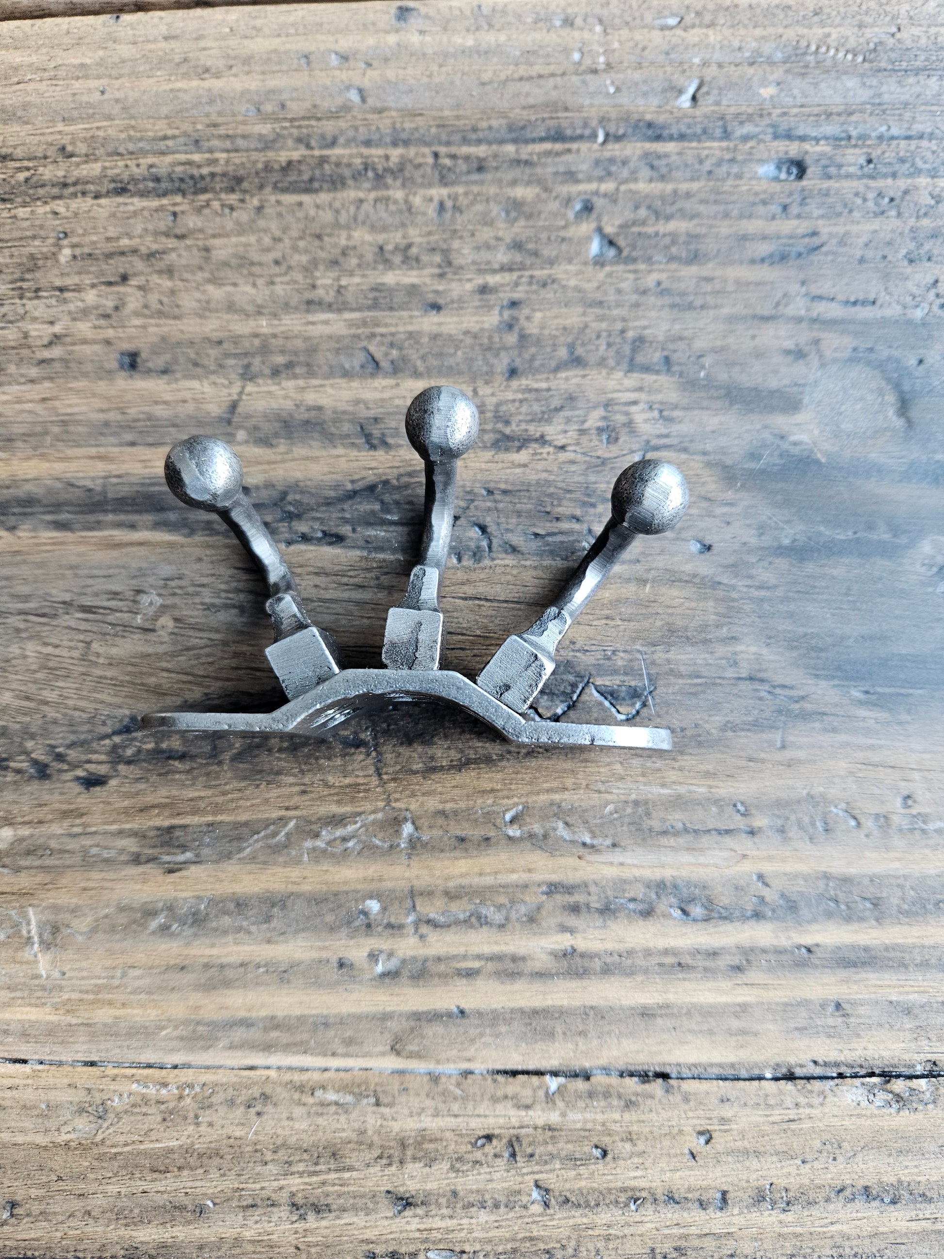 The Triple Hawthorn Coat Hook - A vintage style antique iron Triple hook for closets, cupboards, pantry's etc..an ideal space saving hook for those older properties and closets, The hook base is 3 1/4" long and 1 1/4" wide. The entire piece sits just over 2" from the wall.